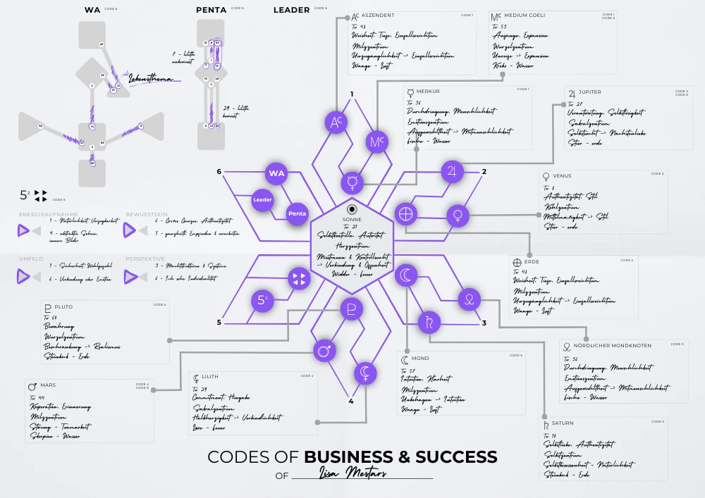 Die Codes of Business & Success bestehen aus 6 Bereichen, die dir helfen, deine Energie in Bezug auf deinen Purpose, deine Mission und dein Business zu verstehen, zu erarbeiten und mit ihrer Hilfe in die Umsetzung zu kommen.