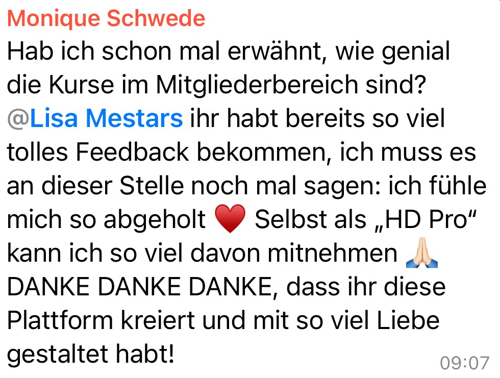 Lisa steht dir mit einer monatlichen Live-Zoom-Session (Aufzeichnung bis zum nächsten Live verfügbar) für all deine Fragen bereit. Sie beantwortet Fragen zum Tool und gibt dir Hilfestellungen zu allen Themen rund um Human Design, Astrologie uvm.