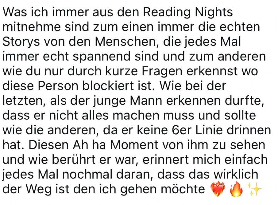 Die Reading Night ist wie ein Konzert: Die Energie, die Magie und die besonderen Impulse während der Readings kannst du nur live erleben. — Es gibt keine Wiederholung!